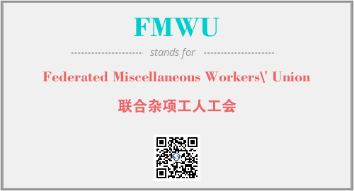 英文缩略词“FMWU”经常作为“Federated Miscellaneous Workers\' Union”的英文缩写来使用,中文表示:“联合杂项工人工会”。本文将详细介绍英文缩写词FMWU所代表英文单词,其对应的中文拼音、详细解释以及在英语中的流行度。此外,还有关于缩略词FMWU的分类、应用领域及相关应用示例等。