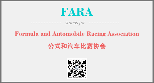 上述内容是“Formula and Automobile Racing Association”作为“FARA”的缩写,解释为“公式和汽车比赛协会”时的信息,以及英文缩略词FARA所代表的英文单词,其对应的中文拼音、详细解释以及在英文中的流行度和相关分类、应用领域及应用示例等。