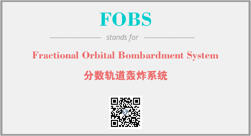 上述内容是“Fractional Orbital Bombardment System”作为“FOBS”的缩写,解释为“分数轨道轰炸系统”时的信息,以及英文缩略词FOBS所代表的英文单词,其对应的中文拼音、详细解释以及在英文中的流行度和相关分类、应用领域及应用示例等。