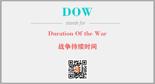 上述内容是“Duration Of the War”作为“DOW”的缩写,解释为“战争持续时间”时的信息,以及英文缩略词DOW所代表的英文单词,其对应的中文拼音、详细解释以及在英文中的流行度和相关分类、应用领域及应用示例等。