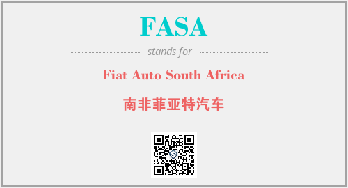 英文缩略词“FASA”经常作为“Fiat Auto South Africa”的英文缩写来使用,中文表示:“南非菲亚特汽车”。本文将详细介绍英文缩写词FASA所代表英文单词,其对应的中文拼音、详细解释以及在英语中的流行度。此外,还有关于缩略词FASA的分类、应用领域及相关应用示例等。