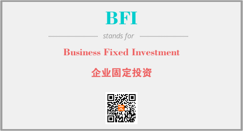 上述内容是“Business Fixed Investment”作为“BFI”的缩写,解释为“企业固定投资”时的信息,以及英文缩略词BFI所代表的英文单词,其对应的中文拼音、详细解释以及在英文中的流行度和相关分类、应用领域及应用示例等。