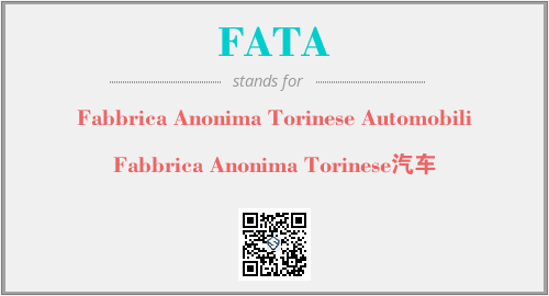 上述内容是“Fabbrica Anonima Torinese Automobili”作为“FATA”的缩写,解释为“Fabbrica Anonima Torinese汽车”时的信息,以及英文缩略词FATA所代表的英文单词,其对应的中文拼音、详细解释以及在英文中的流行度和相关分类、应用领域及应用示例等。