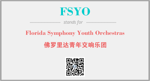 英文缩略词“FSYO”经常作为“Florida Symphony Youth Orchestras”的英文缩写来使用,中文表示:“佛罗里达青年交响乐团”。本文将详细介绍英文缩写词FSYO所代表英文单词,其对应的中文拼音、详细解释以及在英语中的流行度。此外,还有关于缩略词FSYO的分类、应用领域及相关应用示例等。