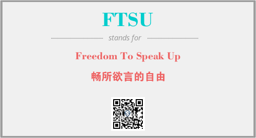 英文缩略词“FTSU”经常作为“Freedom To Speak Up”的英文缩写来使用,中文表示:“畅所欲言的自由”。本文将详细介绍英文缩写词FTSU所代表英文单词,其对应的中文拼音、详细解释以及在英语中的流行度。此外,还有关于缩略词FTSU的分类、应用领域及相关应用示例等。