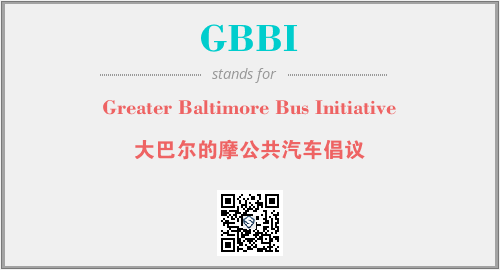 上述内容是“Greater Baltimore Bus Initiative”作为“GBBI”的缩写,解释为“大巴尔的摩公共汽车倡议”时的信息,以及英文缩略词GBBI所代表的英文单词,其对应的中文拼音、详细解释以及在英文中的流行度和相关分类、应用领域及应用示例等。