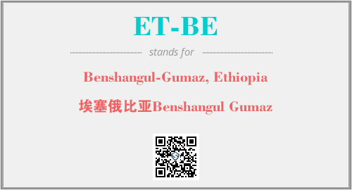 英文缩略词“ET-BE”经常作为“Benshangul-Gumaz, Ethiopia”的英文缩写来使用,中文表示:“埃塞俄比亚Benshangul Gumaz”。本文将详细介绍英文缩写词ET-BE所代表英文单词,其对应的中文拼音、详细解释以及在英语中的流行度。此外,还有关于缩略词ET-BE的分类、应用领域及相关应用示例等。