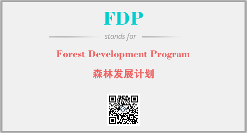上述内容是“Forest Development Program”作为“FDP”的缩写,解释为“森林发展计划”时的信息,以及英文缩略词FDP所代表的英文单词,其对应的中文拼音、详细解释以及在英文中的流行度和相关分类、应用领域及应用示例等。