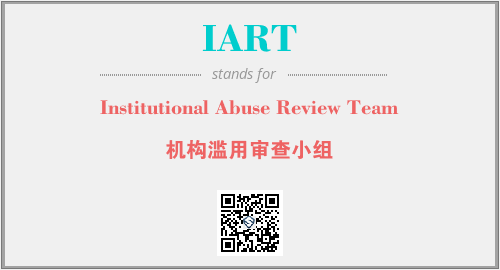 上述内容是“Institutional Abuse Review Team”作为“IART”的缩写,解释为“机构滥用审查小组”时的信息,以及英文缩略词IART所代表的英文单词,其对应的中文拼音、详细解释以及在英文中的流行度和相关分类、应用领域及应用示例等。