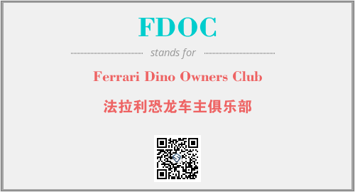 以上为Ferrari Dino Owners Club英文缩略词FDOC的中文解释,以及该英文缩写在英语的流行度、分类和应用领域方面的信息。