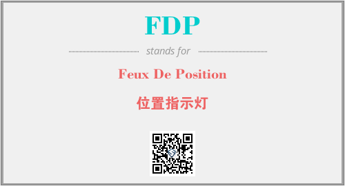 英文缩略词“FDP”经常作为“Feux De Position”的英文缩写来使用,中文表示:“位置指示灯”。本文将详细介绍英文缩写词FDP所代表英文单词,其对应的中文拼音、详细解释以及在英语中的流行度。此外,还有关于缩略词FDP的分类、应用领域及相关应用示例等。