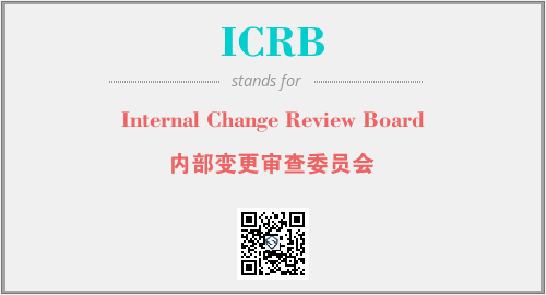 英文缩略词“ICRB”经常作为“Internal Change Review Board”的英文缩写来使用,中文表示:“内部变更审查委员会”。本文将详细介绍英文缩写词ICRB所代表英文单词,其对应的中文拼音、详细解释以及在英语中的流行度。此外,还有关于缩略词ICRB的分类、应用领域及相关应用示例等。