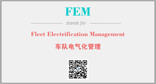 上述内容是“Fleet Electrification Management”作为“FEM”的缩写,解释为“车队电气化管理”时的信息,以及英文缩略词FEM所代表的英文单词,其对应的中文拼音、详细解释以及在英文中的流行度和相关分类、应用领域及应用示例等。
