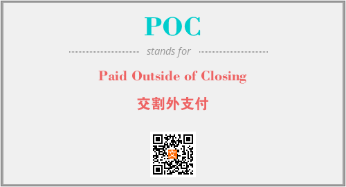 上述内容是“Paid Outside of Closing”作为“POC”的缩写,解释为“交割外支付”时的信息,以及英文缩略词POC所代表的英文单词,其对应的中文拼音、详细解释以及在英文中的流行度和相关分类、应用领域及应用示例等。