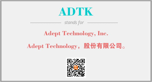上述内容是“Adept Technology, Inc.”作为“ADTK”的缩写,解释为“Adept Technology,股份有限公司。”时的信息,以及英文缩略词ADTK所代表的英文单词,其对应的中文拼音、详细解释以及在英文中的流行度和相关分类、应用领域及应用示例等。