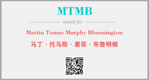 上述内容是“Martin Tomas Murphy Bloomington”作为“MTMB”的缩写,解释为“马丁·托马斯·墨菲·布鲁明顿”时的信息,以及英文缩略词MTMB所代表的英文单词,其对应的中文拼音、详细解释以及在英文中的流行度和相关分类、应用领域及应用示例等。