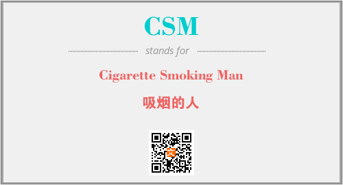 英文缩略词“CSM”经常作为“Cigarette Smoking Man”的英文缩写来使用,中文表示:“吸烟的人”。本文将详细介绍英文缩写词CSM所代表英文单词,其对应的中文拼音、详细解释以及在英语中的流行度。此外,还有关于缩略词CSM的分类、应用领域及相关应用示例等。