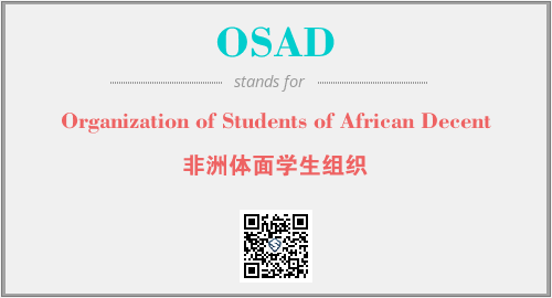 以上为Organization of Students of African Decent英文缩略词OSAD的中文解释,以及该英文缩写在英语的流行度、分类和应用领域方面的信息。