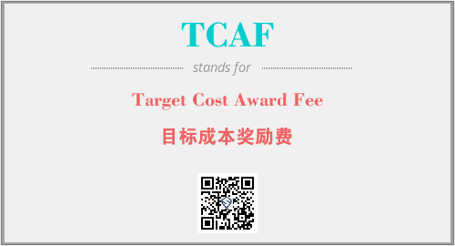 上述内容是“Target Cost Award Fee”作为“TCAF”的缩写,解释为“目标成本奖励费”时的信息,以及英文缩略词TCAF所代表的英文单词,其对应的中文拼音、详细解释以及在英文中的流行度和相关分类、应用领域及应用示例等。