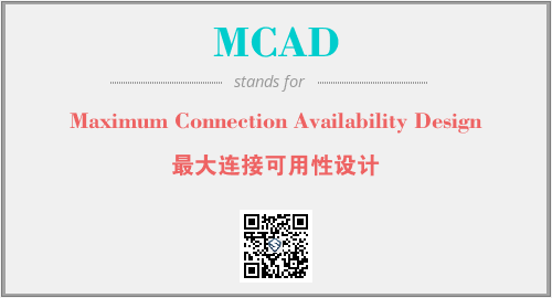 上述内容是“Maximum Connection Availability Design”作为“MCAD”的缩写,解释为“最大连接可用性设计”时的信息,以及英文缩略词MCAD所代表的英文单词,其对应的中文拼音、详细解释以及在英文中的流行度和相关分类、应用领域及应用示例等。