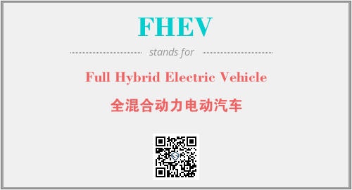 英文缩略词“FHEV”经常作为“Full Hybrid Electric Vehicle”的英文缩写来使用,中文表示:“全混合动力电动汽车”。本文将详细介绍英文缩写词FHEV所代表英文单词,其对应的中文拼音、详细解释以及在英语中的流行度。此外,还有关于缩略词FHEV的分类、应用领域及相关应用示例等。