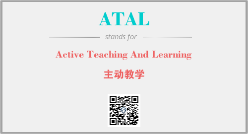 英文缩略词“ATAL”经常作为“Active Teaching And Learning”的英文缩写来使用,中文表示:“主动教学”。本文将详细介绍英文缩写词ATAL所代表英文单词,其对应的中文拼音、详细解释以及在英语中的流行度。此外,还有关于缩略词ATAL的分类、应用领域及相关应用示例等。