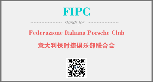 上述内容是“Federazione Italiana Porsche Club”作为“FIPC”的缩写,解释为“意大利保时捷俱乐部联合会”时的信息,以及英文缩略词FIPC所代表的英文单词,其对应的中文拼音、详细解释以及在英文中的流行度和相关分类、应用领域及应用示例等。