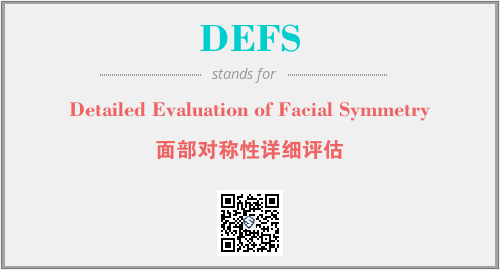 上述内容是“Detailed Evaluation of Facial Symmetry”作为“DEFS”的缩写,解释为“面部对称性详细评估”时的信息,以及英文缩略词DEFS所代表的英文单词,其对应的中文拼音、详细解释以及在英文中的流行度和相关分类、应用领域及应用示例等。