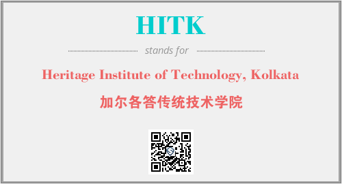 上述内容是“Heritage Institute of Technology, Kolkata”作为“HITK”的缩写,解释为“加尔各答传统技术学院”时的信息,以及英文缩略词HITK所代表的英文单词,其对应的中文拼音、详细解释以及在英文中的流行度和相关分类、应用领域及应用示例等。