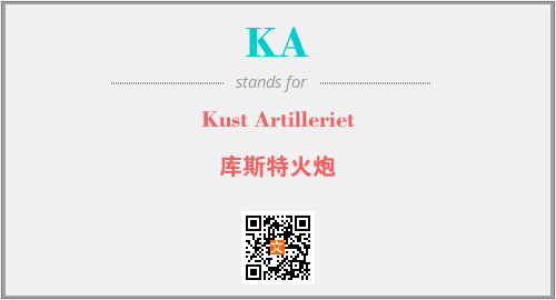 英文缩略词“KA”经常作为“Kust Artilleriet”的英文缩写来使用,中文表示:“库斯特火炮”。本文将详细介绍英文缩写词KA所代表英文单词,其对应的中文拼音、详细解释以及在英语中的流行度。此外,还有关于缩略词KA的分类、应用领域及相关应用示例等。