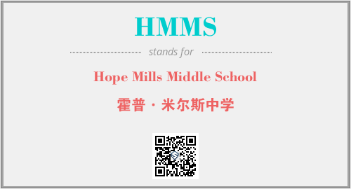 上述内容是“Hope Mills Middle School”作为“HMMS”的缩写,解释为“霍普·米尔斯中学”时的信息,以及英文缩略词HMMS所代表的英文单词,其对应的中文拼音、详细解释以及在英文中的流行度和相关分类、应用领域及应用示例等。