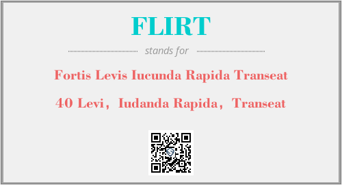 英文缩略词“FLIRT”经常作为“Fortis Levis Iucunda Rapida Transeat”的英文缩写来使用,中文表示:“40 Levi,Iudanda Rapida,Transeat”。本文将详细介绍英文缩写词FLIRT所代表英文单词,其对应的中文拼音、详细解释以及在英语中的流行度。此外,还有关于缩略词FLIRT的分类、应用领域及相关应用示例等。