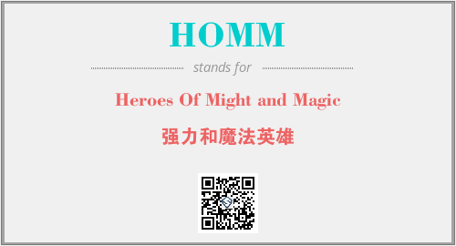 上述内容是“Heroes Of Might and Magic”作为“HOMM”的缩写,解释为“强力和魔法英雄”时的信息,以及英文缩略词HOMM所代表的英文单词,其对应的中文拼音、详细解释以及在英文中的流行度和相关分类、应用领域及应用示例等。