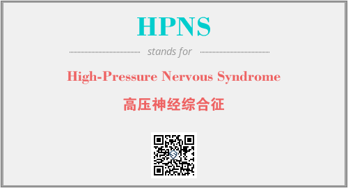 上述内容是“High-Pressure Nervous Syndrome”作为“HPNS”的缩写,解释为“高压神经综合征”时的信息,以及英文缩略词HPNS所代表的英文单词,其对应的中文拼音、详细解释以及在英文中的流行度和相关分类、应用领域及应用示例等。