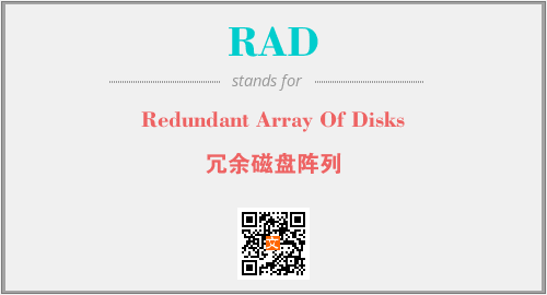 上述内容是“Redundant Array Of Disks”作为“RAD”的缩写,解释为“冗余磁盘阵列”时的信息,以及英文缩略词RAD所代表的英文单词,其对应的中文拼音、详细解释以及在英文中的流行度和相关分类、应用领域及应用示例等。