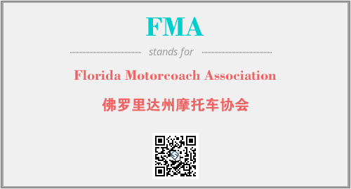 英文缩略词“FMA”经常作为“Florida Motorcoach Association”的英文缩写来使用,中文表示:“佛罗里达州摩托车协会”。本文将详细介绍英文缩写词FMA所代表英文单词,其对应的中文拼音、详细解释以及在英语中的流行度。此外,还有关于缩略词FMA的分类、应用领域及相关应用示例等。