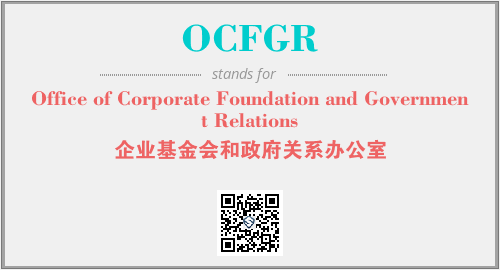 上述内容是“Office of Corporate Foundation and Government Relations”作为“OCFGR”的缩写,解释为“企业基金会和政府关系办公室”时的信息,以及英文缩略词OCFGR所代表的英文单词,其对应的中文拼音、详细解释以及在英文中的流行度和相关分类、应用领域及应用示例等。