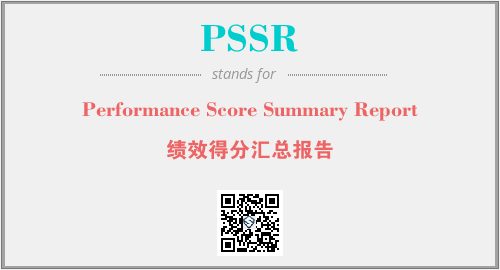 上述内容是“Performance Score Summary Report”作为“PSSR”的缩写,解释为“绩效得分汇总报告”时的信息,以及英文缩略词PSSR所代表的英文单词,其对应的中文拼音、详细解释以及在英文中的流行度和相关分类、应用领域及应用示例等。