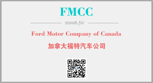 英文缩略词“FMCC”经常作为“Ford Motor Company of Canada”的英文缩写来使用,中文表示:“加拿大福特汽车公司”。本文将详细介绍英文缩写词FMCC所代表英文单词,其对应的中文拼音、详细解释以及在英语中的流行度。此外,还有关于缩略词FMCC的分类、应用领域及相关应用示例等。