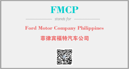 英文缩略词“FMCP”经常作为“Ford Motor Company Philippines”的英文缩写来使用,中文表示:“菲律宾福特汽车公司”。本文将详细介绍英文缩写词FMCP所代表英文单词,其对应的中文拼音、详细解释以及在英语中的流行度。此外,还有关于缩略词FMCP的分类、应用领域及相关应用示例等。