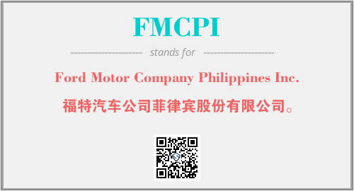 上述内容是“Ford Motor Company Philippines Inc.”作为“FMCPI”的缩写,解释为“福特汽车公司菲律宾股份有限公司。”时的信息,以及英文缩略词FMCPI所代表的英文单词,其对应的中文拼音、详细解释以及在英文中的流行度和相关分类、应用领域及应用示例等。