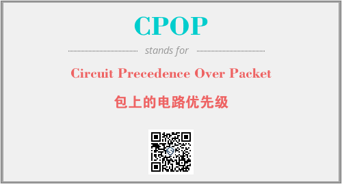 英文缩略词“CPOP”经常作为“Circuit Precedence Over Packet”的英文缩写来使用,中文表示:“包上的电路优先级”。本文将详细介绍英文缩写词CPOP所代表英文单词,其对应的中文拼音、详细解释以及在英语中的流行度。此外,还有关于缩略词CPOP的分类、应用领域及相关应用示例等。
