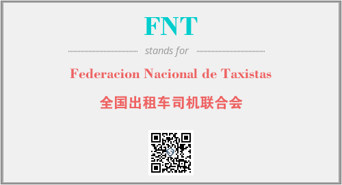 上述内容是“Federacion Nacional de Taxistas”作为“FNT”的缩写,解释为“全国出租车司机联合会”时的信息,以及英文缩略词FNT所代表的英文单词,其对应的中文拼音、详细解释以及在英文中的流行度和相关分类、应用领域及应用示例等。
