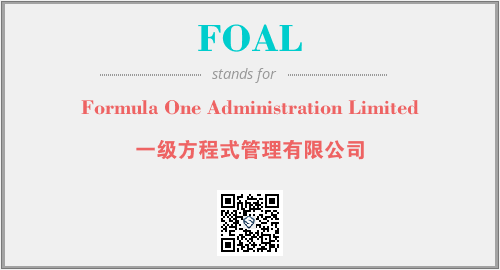 上述内容是“Formula One Administration Limited”作为“FOAL”的缩写,解释为“一级方程式管理有限公司”时的信息,以及英文缩略词FOAL所代表的英文单词,其对应的中文拼音、详细解释以及在英文中的流行度和相关分类、应用领域及应用示例等。