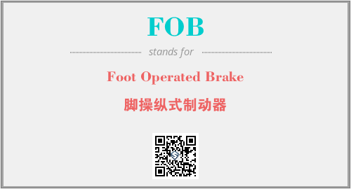 上述内容是“Foot Operated Brake”作为“FOB”的缩写,解释为“脚操纵式制动器”时的信息,以及英文缩略词FOB所代表的英文单词,其对应的中文拼音、详细解释以及在英文中的流行度和相关分类、应用领域及应用示例等。