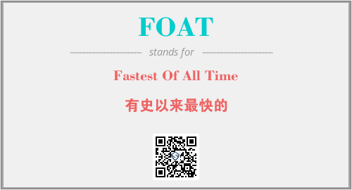 上述内容是“Fastest Of All Time”作为“FOAT”的缩写,解释为“有史以来最快的”时的信息,以及英文缩略词FOAT所代表的英文单词,其对应的中文拼音、详细解释以及在英文中的流行度和相关分类、应用领域及应用示例等。