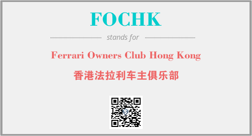以上为Ferrari Owners Club Hong Kong英文缩略词FOCHK的中文解释,以及该英文缩写在英语的流行度、分类和应用领域方面的信息。