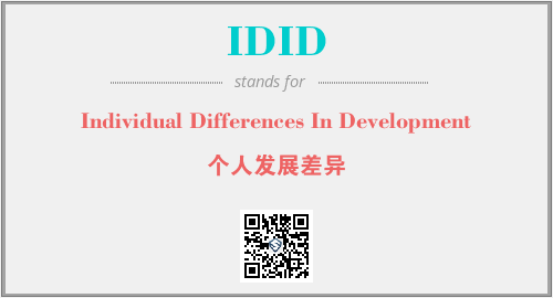 以上为Individual Differences In Development英文缩略词IDID的中文解释,以及该英文缩写在英语的流行度、分类和应用领域方面的信息。