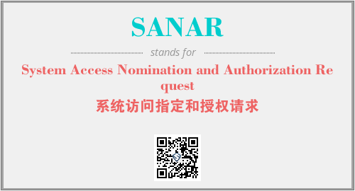 英文缩略词“SANAR”经常作为“System Access Nomination and Authorization Request”的英文缩写来使用,中文表示:“系统访问指定和授权请求”。本文将详细介绍英文缩写词SANAR所代表英文单词,其对应的中文拼音、详细解释以及在英语中的流行度。此外,还有关于缩略词SANAR的分类、应用领域及相关应用示例等。