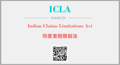 上述内容是“Indian Claims Limitations Act”作为“ICLA”的缩写,解释为“印度索赔限制法”时的信息,以及英文缩略词ICLA所代表的英文单词,其对应的中文拼音、详细解释以及在英文中的流行度和相关分类、应用领域及应用示例等。